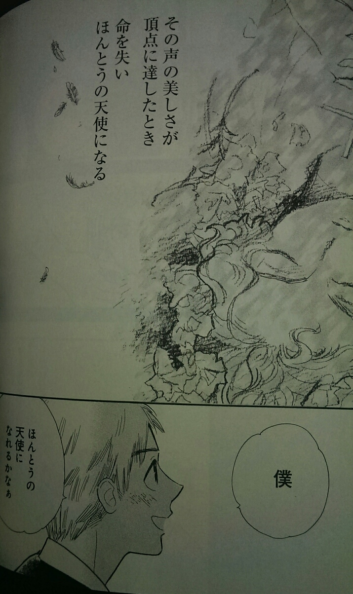 少年達は寄宿学校で修練を積み、その声が神に見初められると「天使」へと進化し究極の美声をだせるようになるんだけど二ヶ月以内に必ず死を迎えるという、怪しい設定が少年達の儚さを高めています。10~1 5歳の少年達が天使になることを目指して、死へ向かって進んでいく、この破滅的な物語、面白いです。