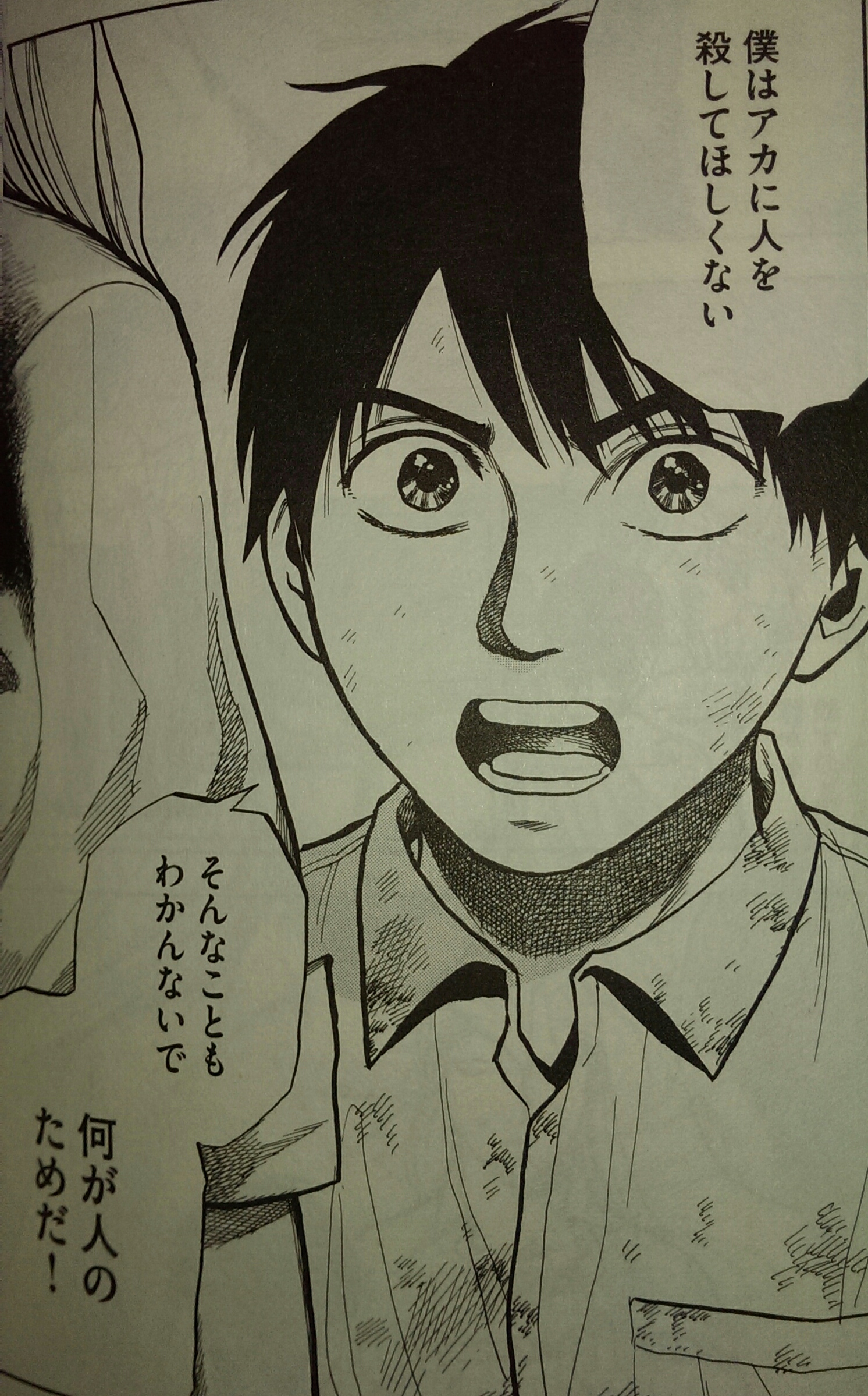 死の苦しみを何度も味わった彼はアカの絶対的な厳罰主義には賛同しないものの、アオくんの語るようなぬっるい正義論には本当に虫唾が走るのだと思います。
