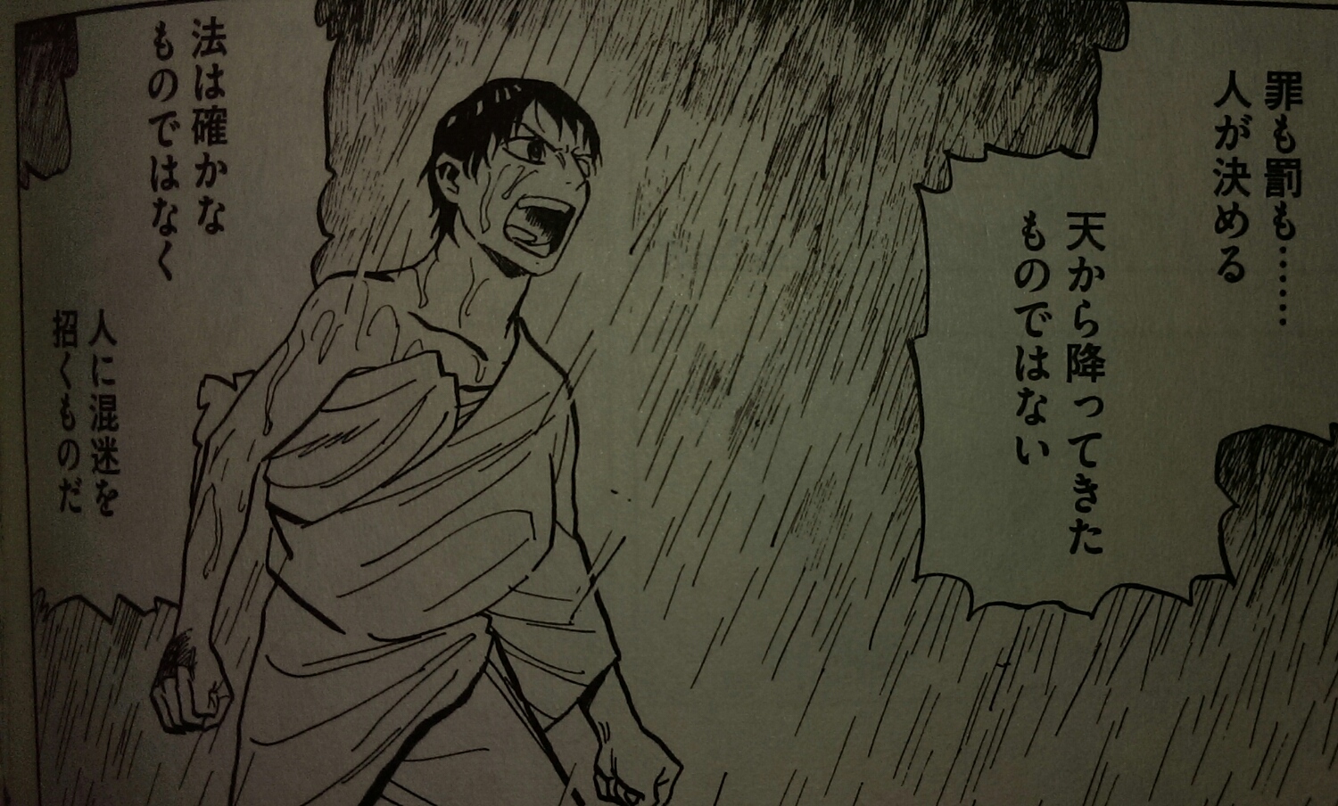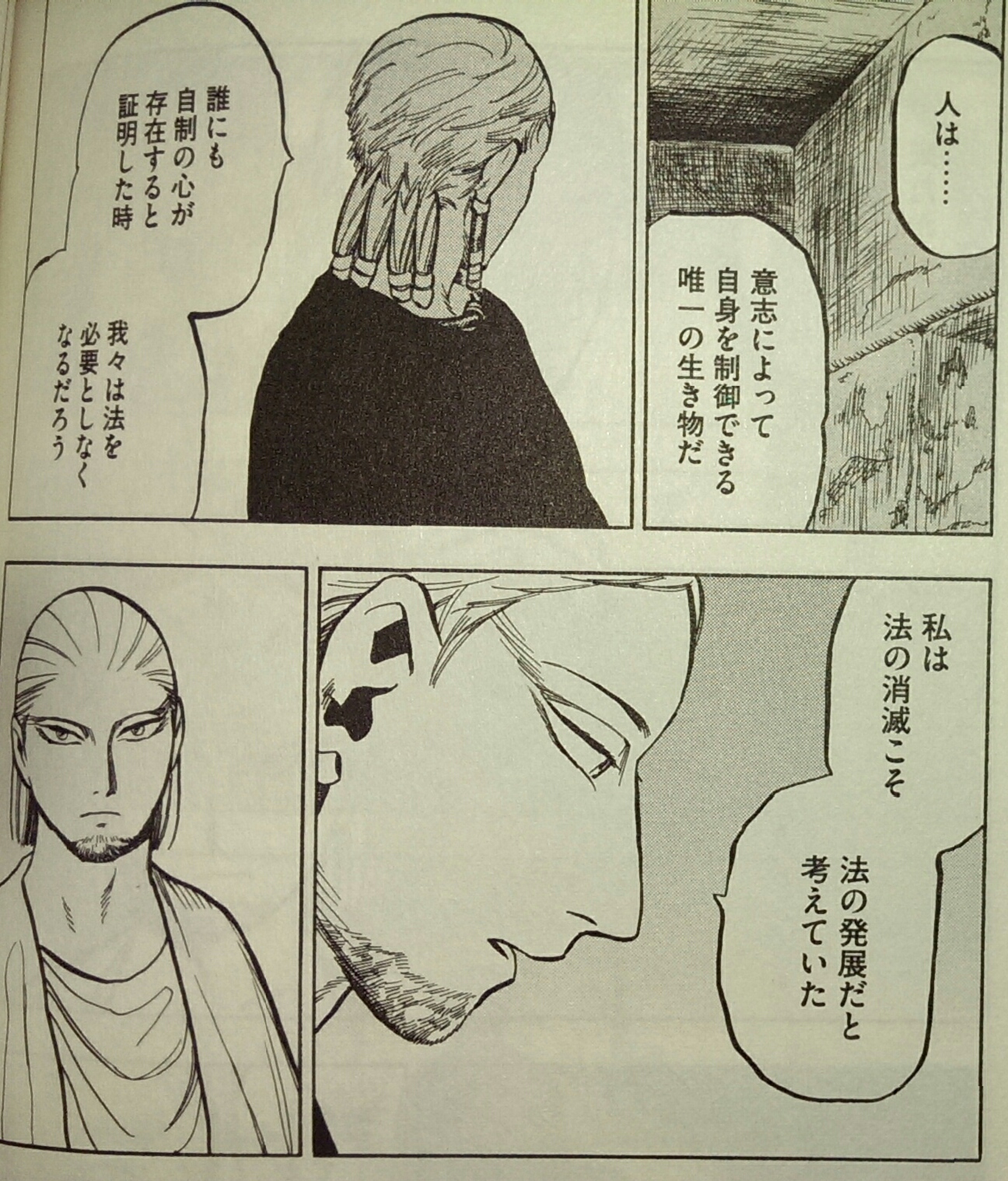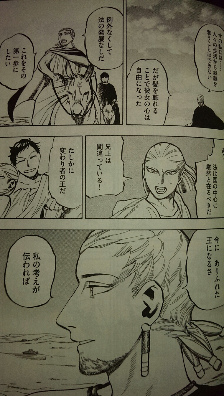 それは自己完結していたアカの思想をも揺るがし、物語を通しての「法の解釈」として読者に提示されます。あんなに薄っぺらだったアオの思想は、ハンムラビ王すら打ち負かすほどの傑へと成長して、何やら感動しました。