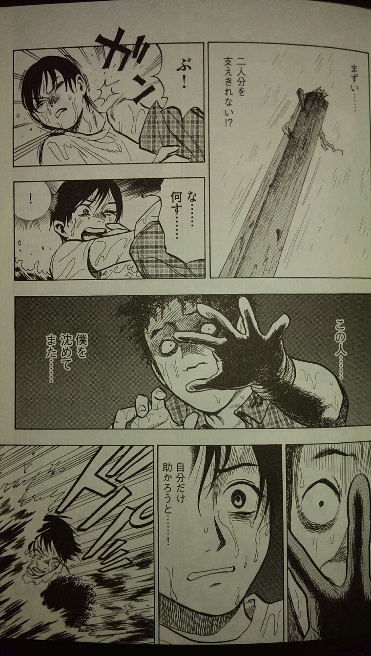 濁流に呑まれそうになって、一緒に木片にしがみついていた子供を水没させて殺した男に会って