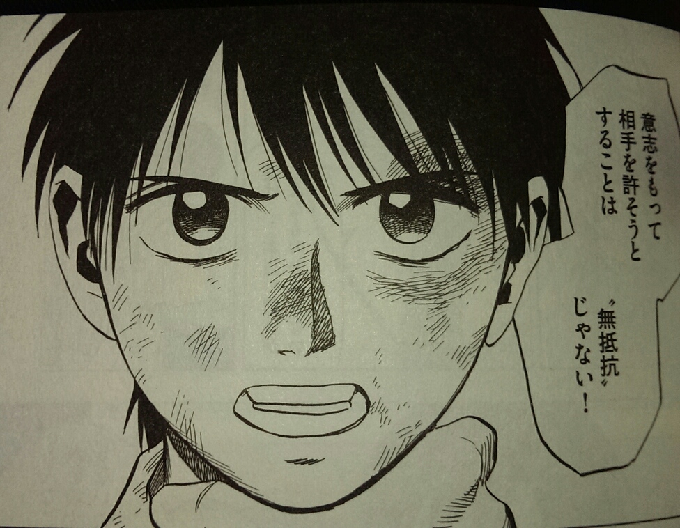 『北斗の拳』で「無抵抗こそ弱者の生きるすべ」と謳って村を守ろうとした村長が、ラオウの逆鱗に触れて八つ裂きにされたのを思い出しました。さすがにアオくんが少しかわいそうになってきます。