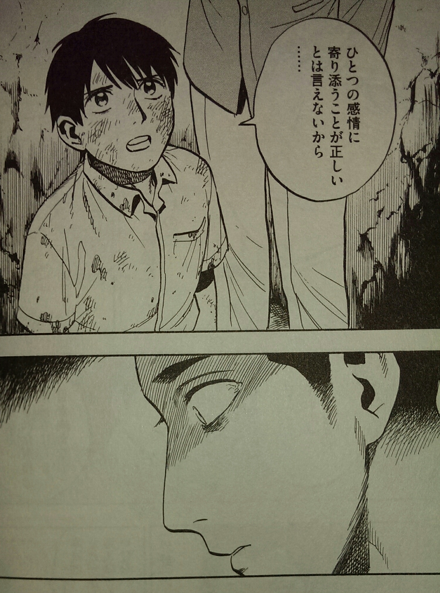 アオの言ってる内容はとても正しいし、彼は心からそう思っていっているはずなのに、何故こんなにも薄く感じられるのか。それはアオの同級生で、最低な前科餅オジサンに母親を殺されてしまった廣治くんの言葉に表れているように、アオは「第3者」だからなんだと思うんす。