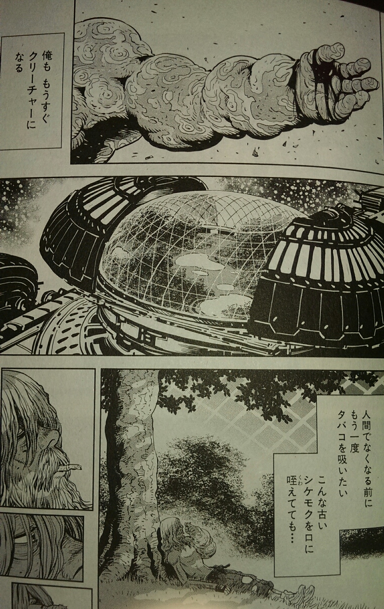 煙草が切れるとソワソワしたり落ち着きがなくなったりする喫煙者の方はよく見ますが、手持ちの煙草が切れたことで理性を失うのを踏みとどまり、結果人間として生きる時間を延長したという皮肉めいた展開が、この話の好きなところです。