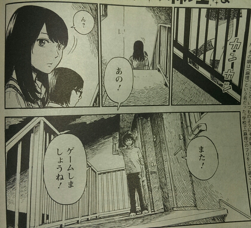 それは好きという感情とも、嫌いという感情とも違っていて、クズな私が二次元的美少女的存在に救いを求めようとしていることに気づかされる、自分のダメかげんを再確認するために読むような、そんな微妙な感想を阿部共実漫画に抱いています。