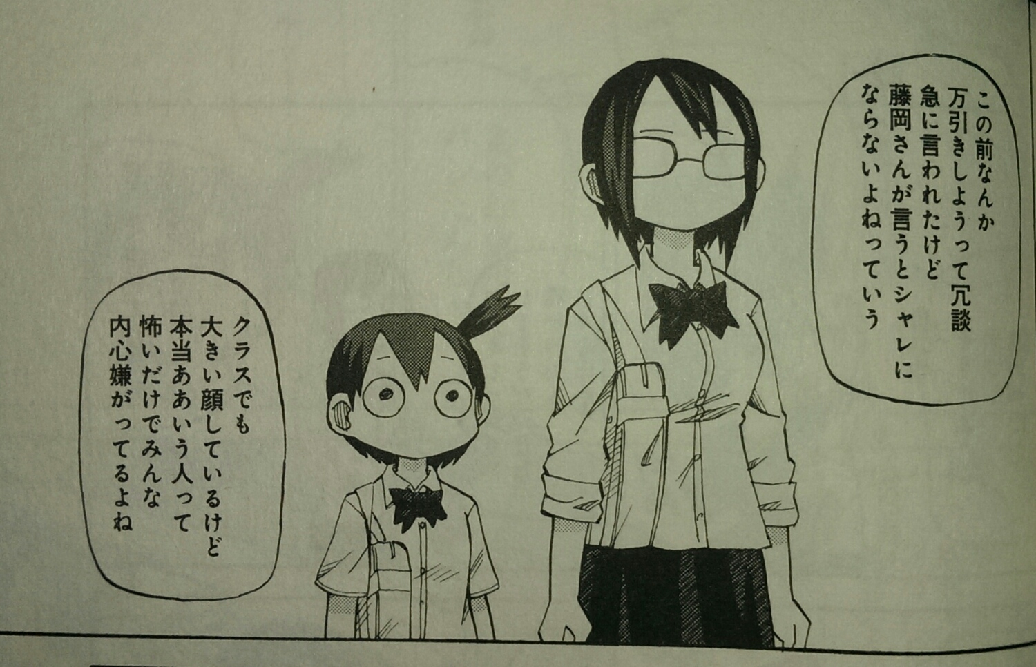 主人公が作品世界の中で自分の容姿をどう思ってるかなど関係なく、阿部共実先生の絵で見るそのキャラクターは読者の私の目には美少女として映り、そんな美少女が人間関係で失敗して自分と同じような汚い悩みを抱いているという事を、私のようなブッサイク男子はどこか嬉しく感じてしまうのです。クズ的自己肯定をしてしまうのは私がブッサイクだからではないとか、美少女だって私と同じような考え方を共有しているのだとか
