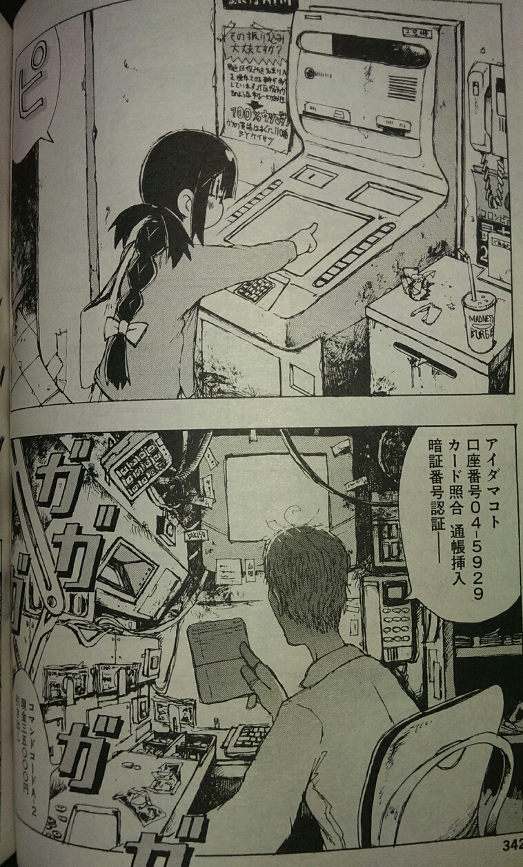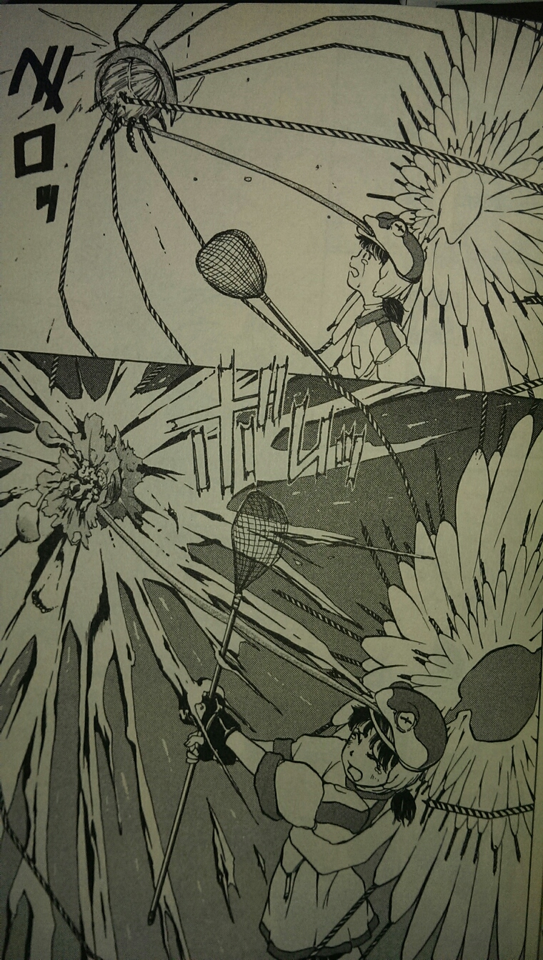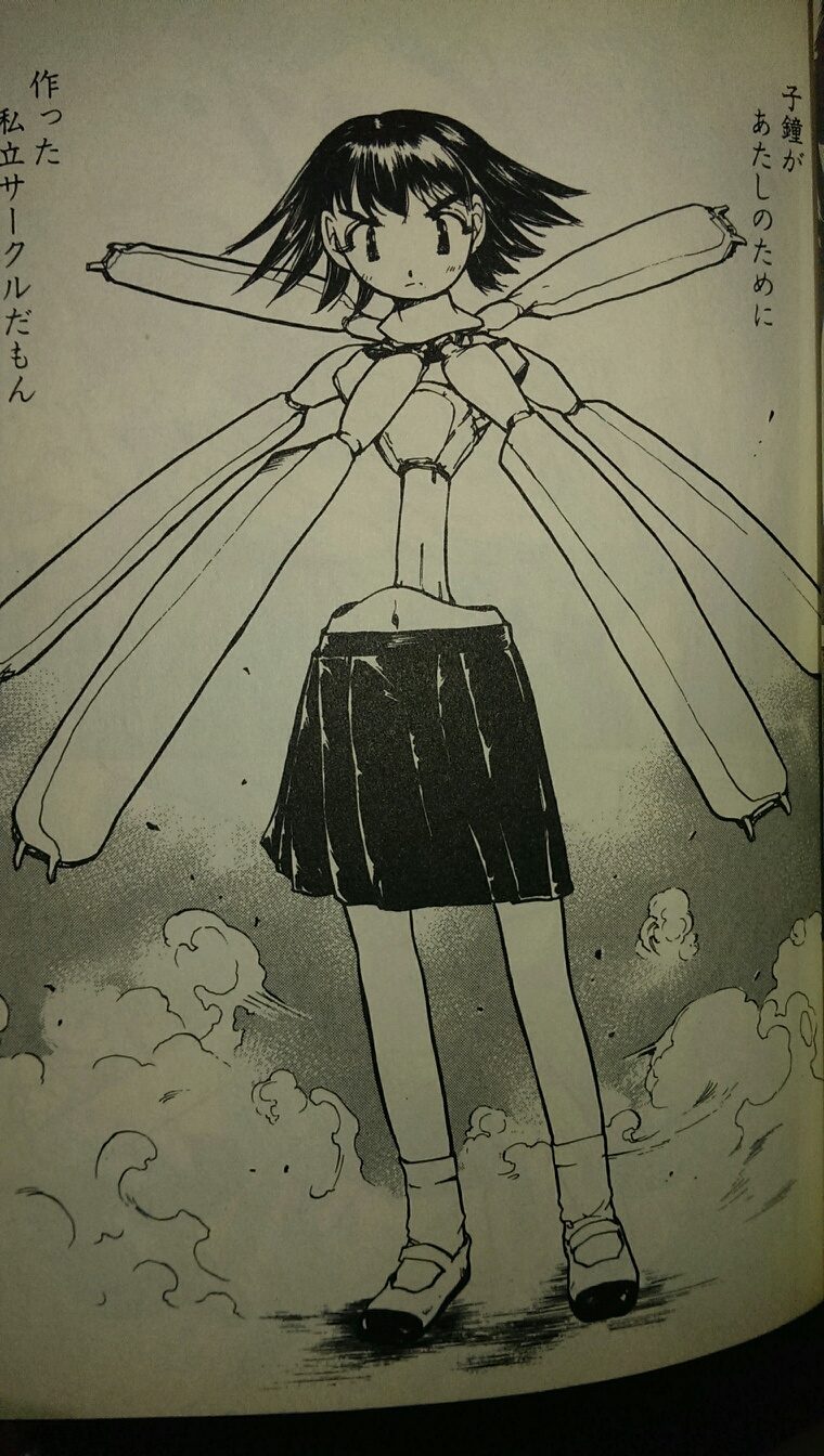 『プロペラ天国』全1巻 ウルトラジャンプ「普通人間」と「合成人間」が共生する世界、主人公の桜田小鐘と桜田小糸はそれぞれの種族のサンプルとしての役割を課され、謎の古文書的文献「」に記されたシナリオ通りの世界を実現するまで永遠に同じ時間軸が繰り返されていく、てな感じの話。小鐘・小糸のどちらか一方でもシナリオを外れるような理想的でない言動をとれば、即合成人間軍団によるプログラム初期化がなされ、「はじめから」になってしまう、恐ろしい。