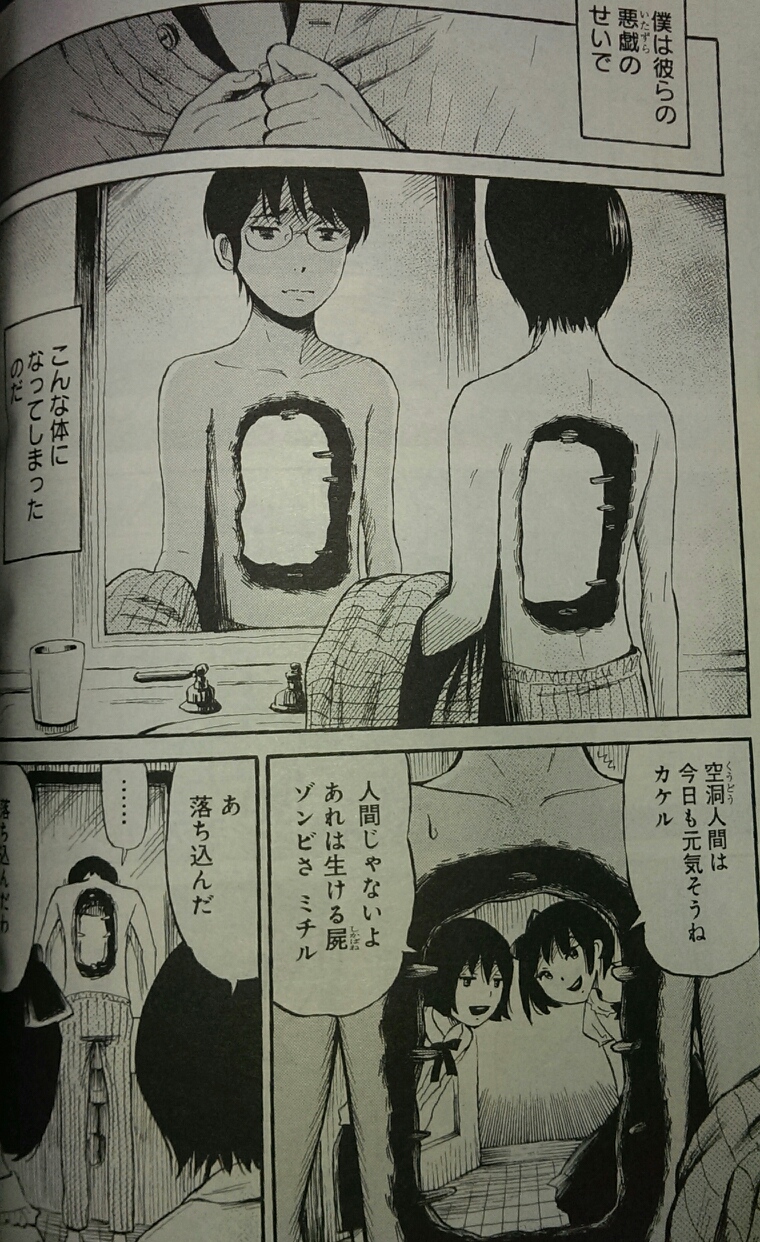 画楽の社で無料公開中。こちらは最新話まで全部読めます。現状富沢ひとし先生の最新作となります。第九話まで公開されていますが今のところ大きな物語の動きはなく、しかし毎回衝撃的なインパクト大な絵をぶちまけてくれるので、毎月とても楽しみに読んでいます。特に主人公の持つ空間移動能力、瞬間移動の新しい捉え方が提示されていて、その表現方法は一見の価値あり、とか思います。