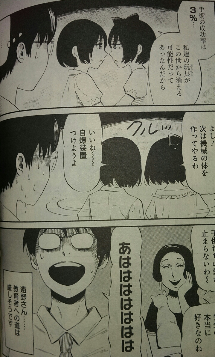 でも毎話毎話の絵の衝撃はすさまじいし、謎がどんどん深まってこんがらがってくのを楽しむ浦沢直樹漫画と同じ成分もあり、全く理解できずに二周目に突入するときの敗北感、全く好きになれないキャラクターデザインへのもやっとした苛立ち、富沢ひとし漫画を読んだ後の私はなにがなんやらわからない、しかしこんな気持ちになれるのは富沢先生の漫画だけ!