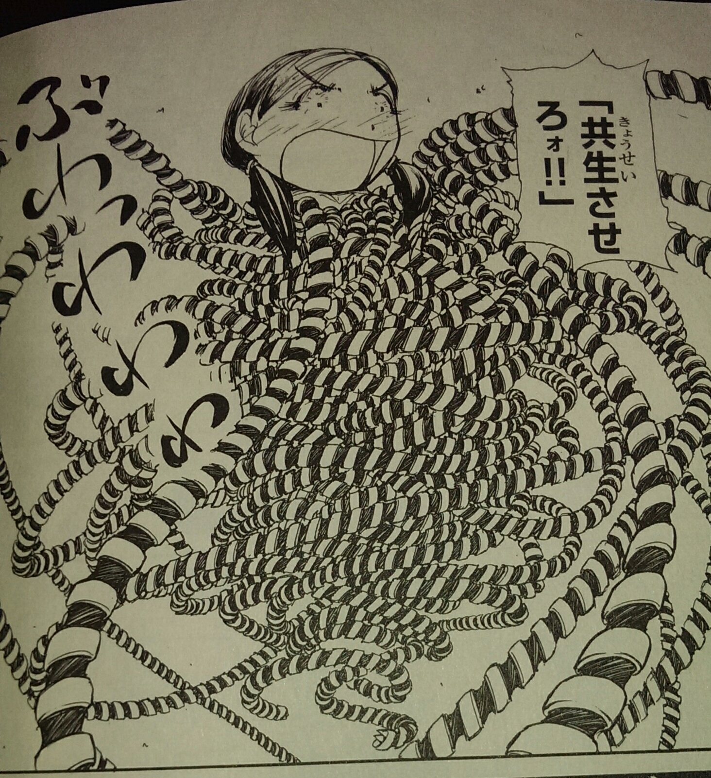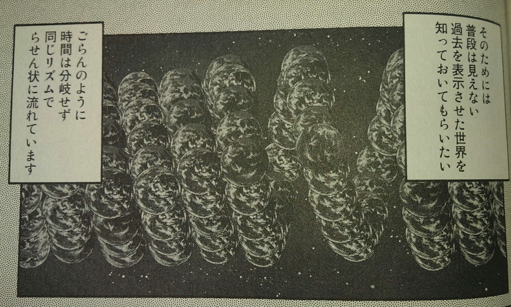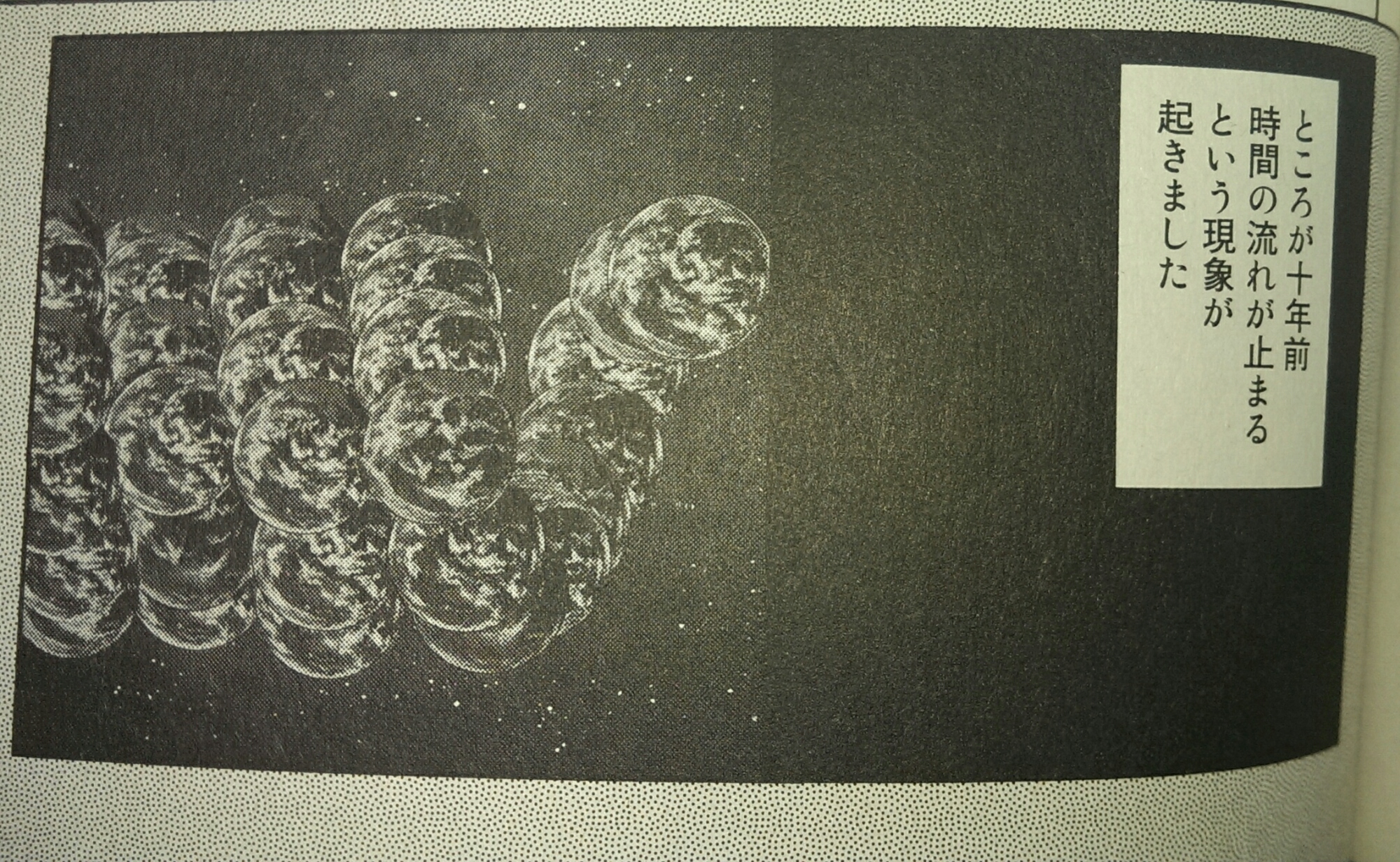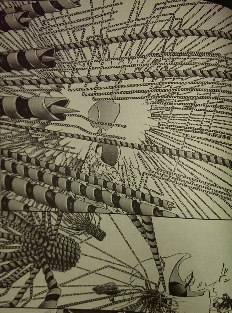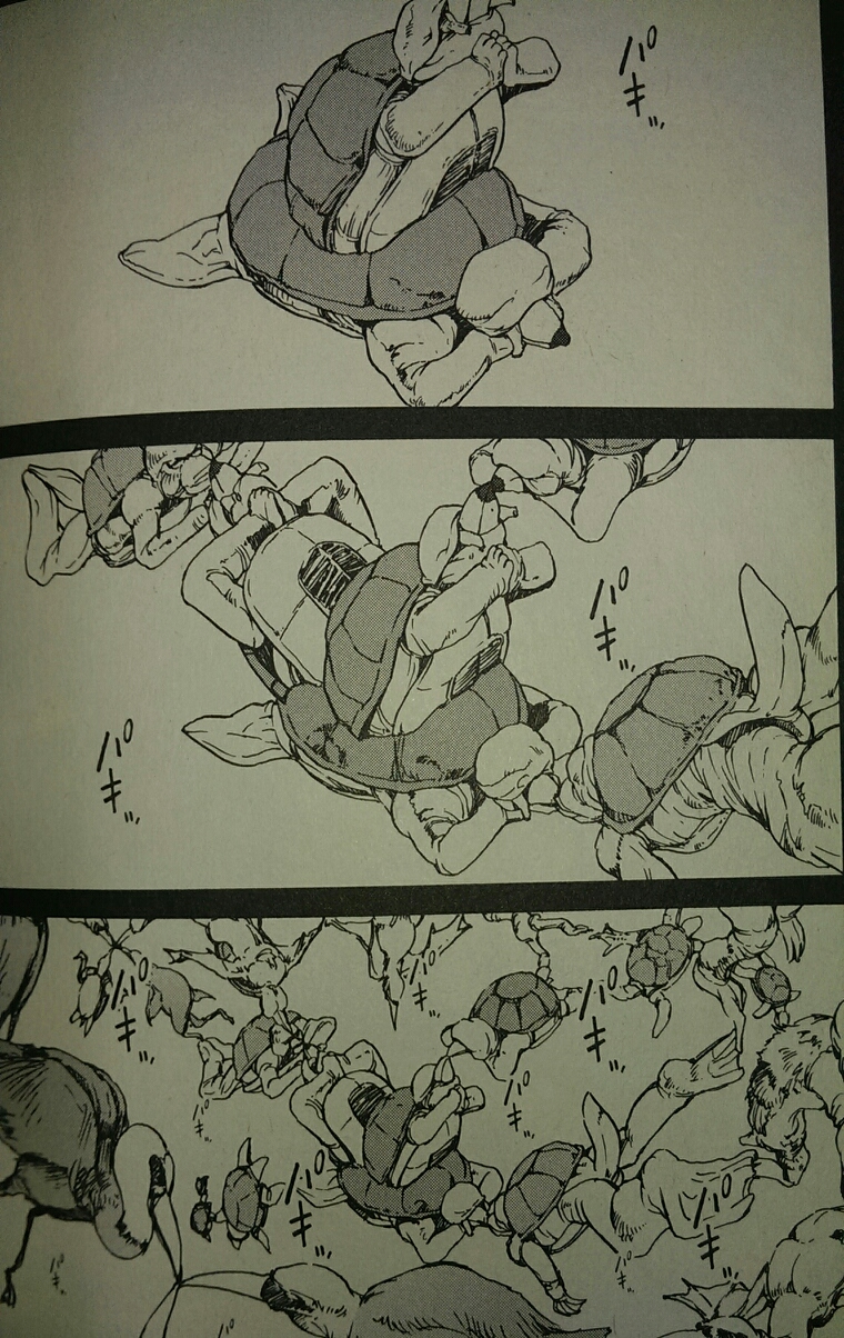 これは『特務咆哮艦ユミハリ』で、時間戦争に負けた河童民族の時間が停止するときのコマなんですが、何が起きてるのかよくわかりません。