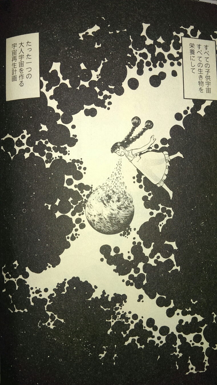 宇宙はいくつも存在して母体となる宇宙からまた小さな宇宙が生まれていくみたいな話は読んだことあるんですが、あまた存在する「子供宇宙」全てを養分として一つの強固な「大人宇宙」を作るという発想、初めて出会いました。