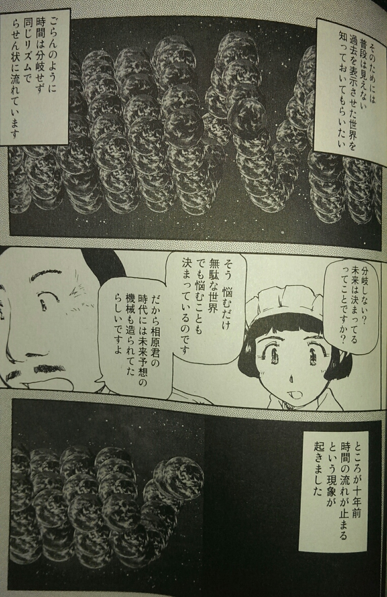 私が読んだ富沢ひとし漫画は全てSFモノで、それぞれやや難解な、時間論・宇宙観を題材にしています。平行宇宙を自在に移動する能力、閉鎖的で何度も繰り返される時間軸の中で物語が思いもよらぬ方向に進んでいくのが、とても楽しい。